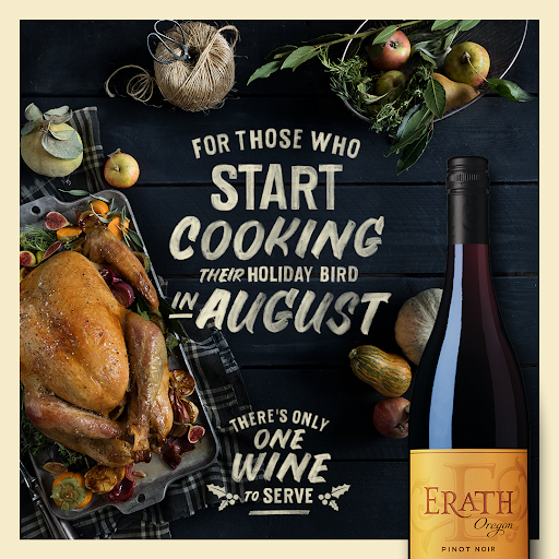 The Problem: Erath Wines needed a holiday campaign that would stand out from the rest. Something that spoke to the foodie, epicurean target, while touting the quality and versatility of Erath Pinto Noir.